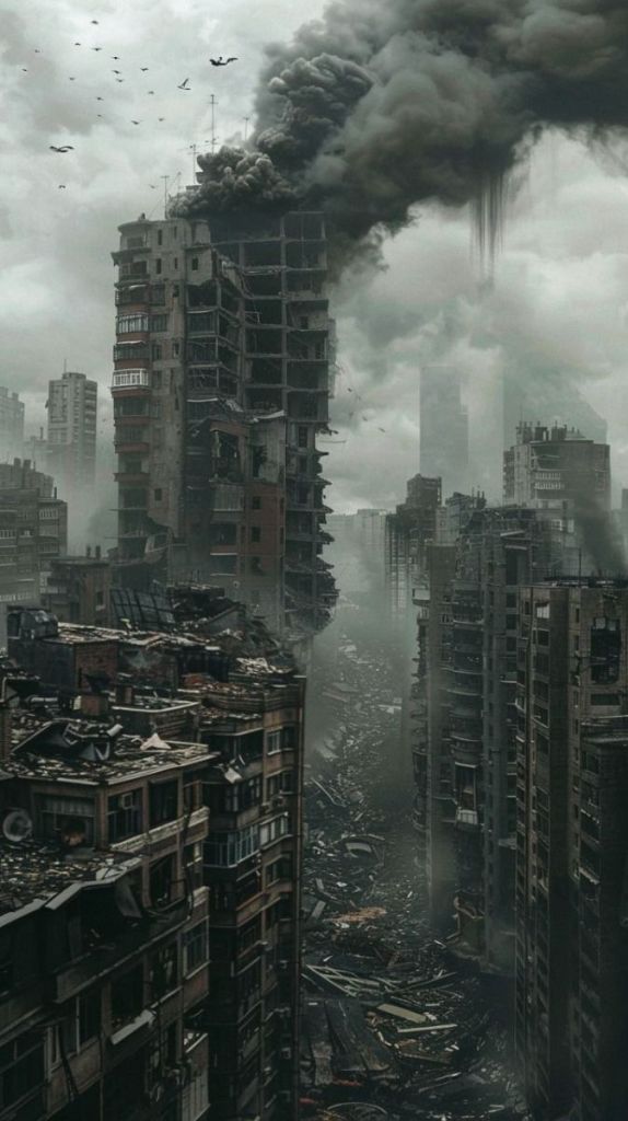I walk out of the building, I see the final moments of civilization happening in front of our very eyes. But no one seems to bat an eye to the danger from above. I stare at the missiles for a while, I watch as they fall to the ground, creating massive explosions, and then I see one right above me.